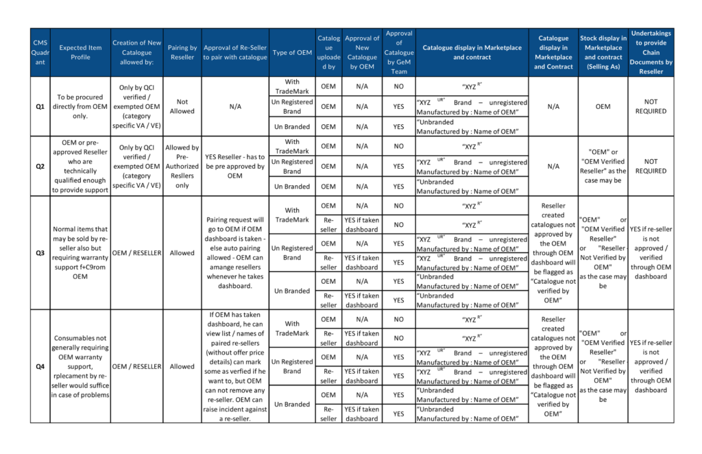 For Quadrant (Q3): : If the reseller is pairing for the first time in the existing catalogue, then the reseller’s credentials, such as name & authorization code, will go to the OEM for approval. The reseller’s listing will be published only after authorization & permission by the OEM.